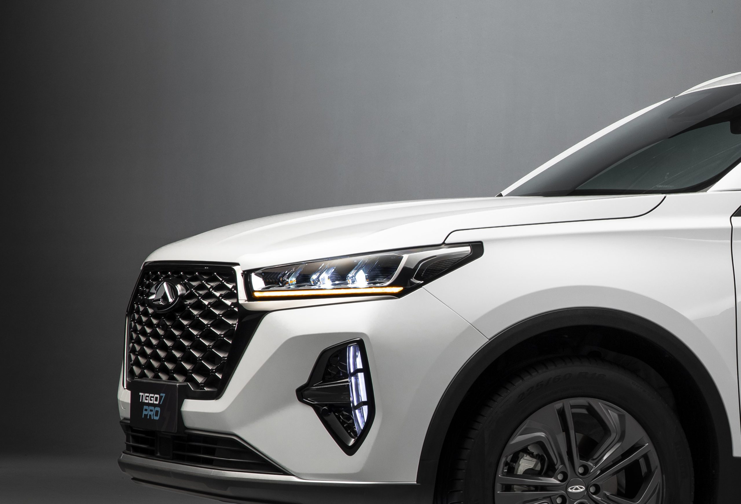 O Tiggo 7 foi o modelo que estreou a linguagem de design atual da marca, com proporções bem equilibradas. O SUV exibe uma carroceria elegante e sóbria, com um certo ar esportivo. Na frente, a enorme grade se destaca com um padrão que gera um efeito tridimensional. Existem luzes led automáticas na parte superior e inserções profundas para acomodar as unidades de neblina na área inferior.