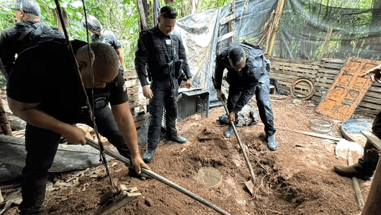 Um caderno com anotações de valores que somam mais de R$ 1 milhão foi apreendido pela Polícia Civil, neste domingo (21), nas proximidades do sítio onde 22 fuzis e munições foram encontrados