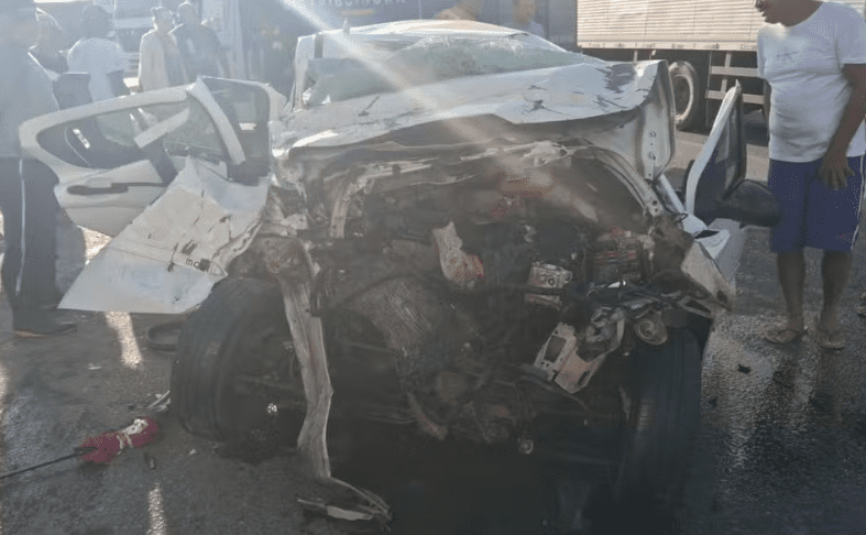 Acidente ocorreu na manhã de segunda-feira (29), em trecho de Feira de Santana, após o carro da Prefeitura de Muritiba colidir frontalmente com a carreta carregada de feijão. Parente de