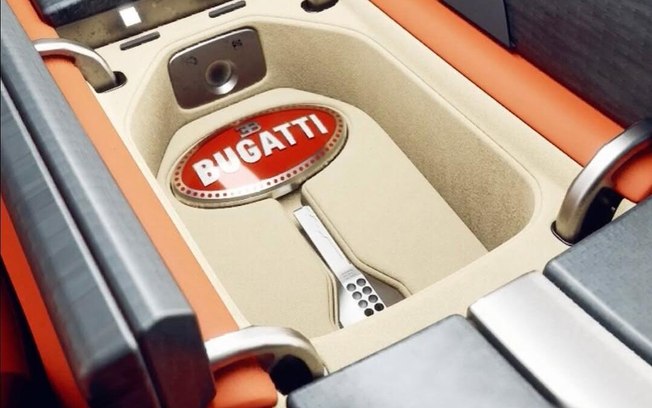 A Bugatti chama o espaço de “Hidden Delights” (“Delícias Ocultas” em tradução literal), e em algumas versões ele pode ser personalizado com couro claro, acabamentos em fibra de carbono e até laranja vibrante, dependendo da especificação do comprador.