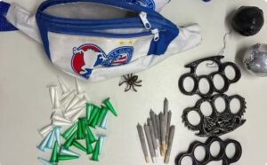 Situação aconteceu na Boca do Rio, antes do jogo do Bahia contra o Santos, no sábado (25). Também foram apreendidos soqueiras, foguete, taco de beisebol, barras de madeira, entre outros equipamentos.