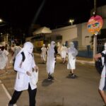 Vestidos de branco e munidos de farinha e ovos, os participantes entoaram o grito de guerra característico: “Nazaro morreu com o peido que deu do feijão podre que comeu”, enquanto percorriam as ruas. A manifestação, reconhecida como Patrimônio Imaterial Cultural de Barreiras pela Lei nº 1.266/2017, foi acompanhada por moradores e visitantes